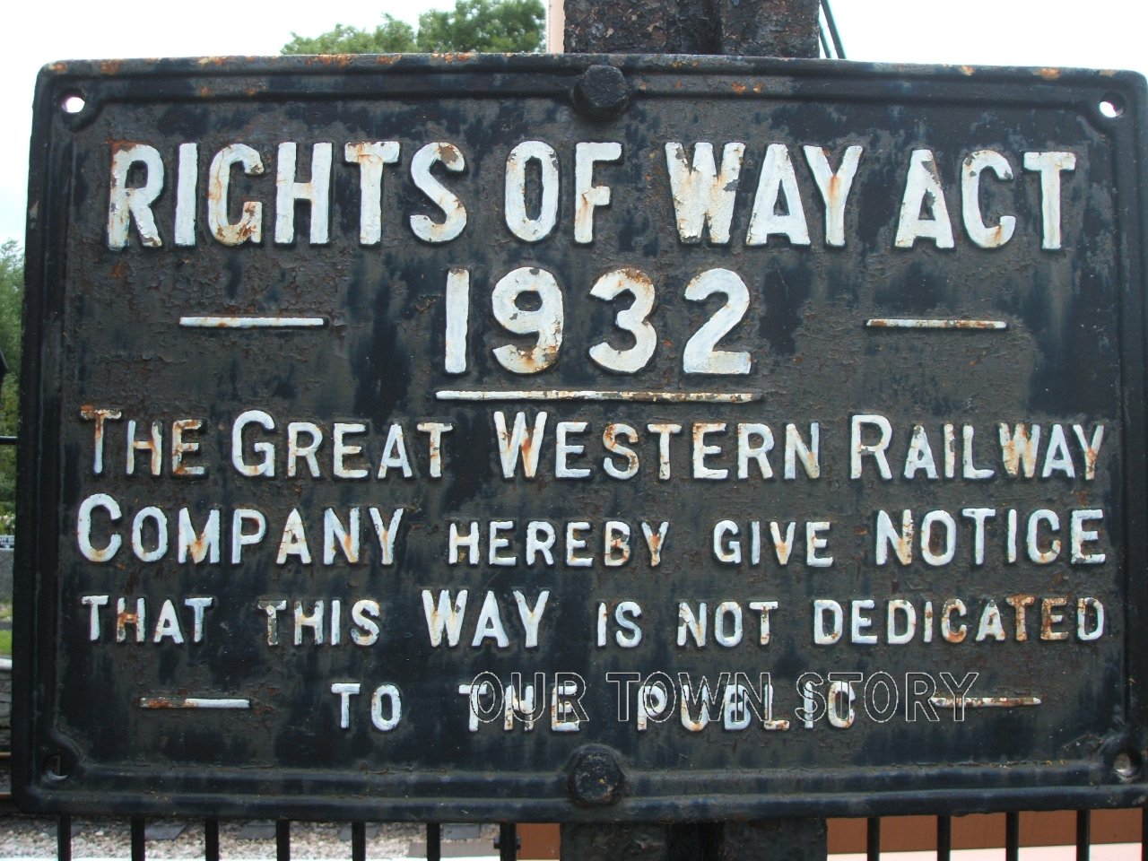 A historic Rights of Way sign on the station platform at Buckfastleigh, South Devon Railway, 2013