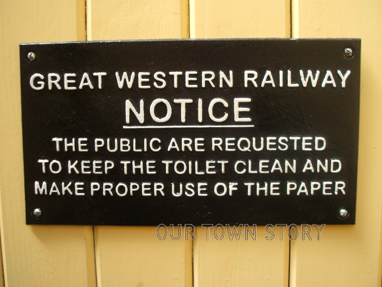 A vintage sign in the lavatory at Buckfastleigh station on the South Devon Railway, 2013