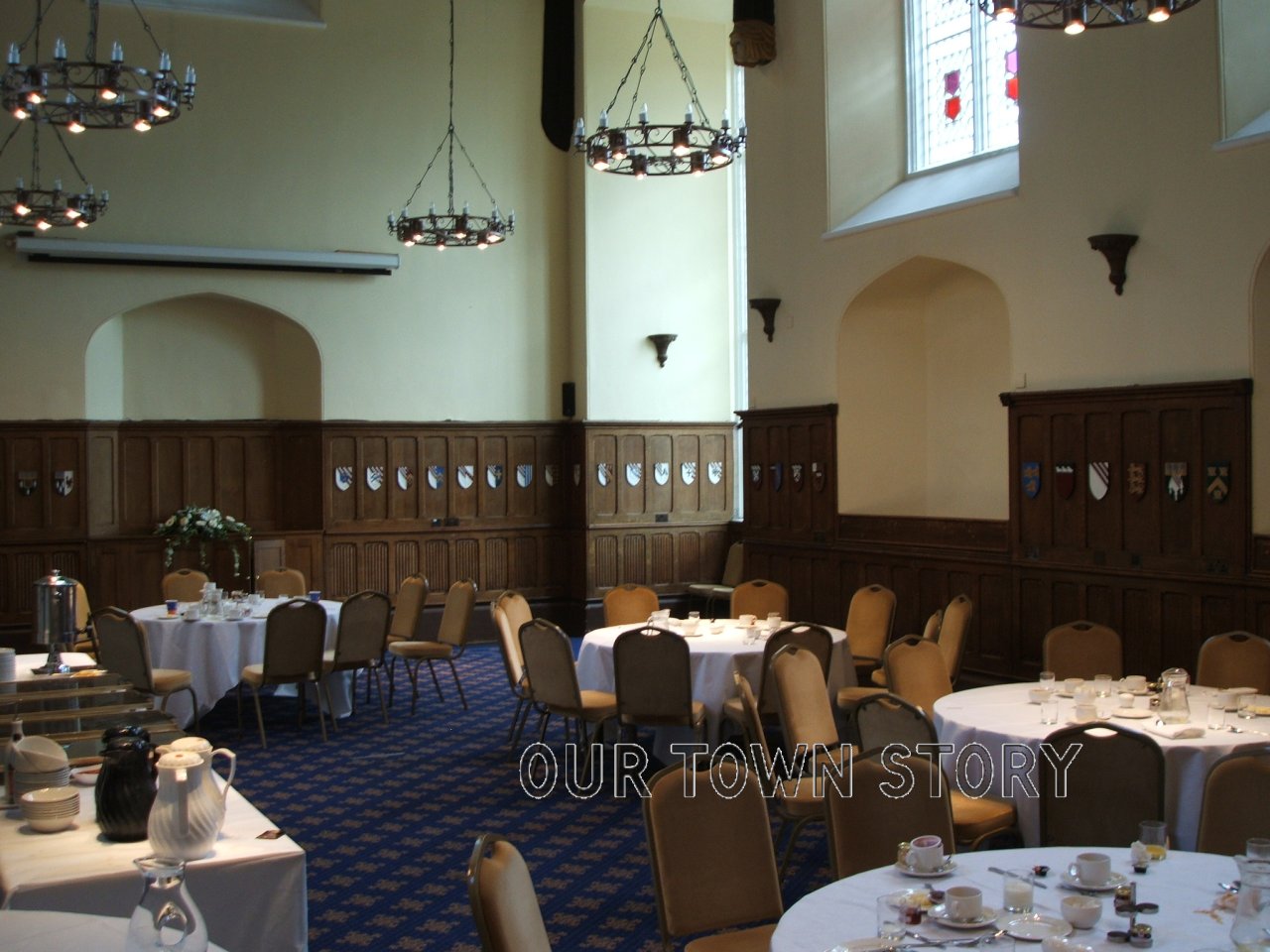 This is the oak panelled Great Hall of the hotel set up for breakfast after a function