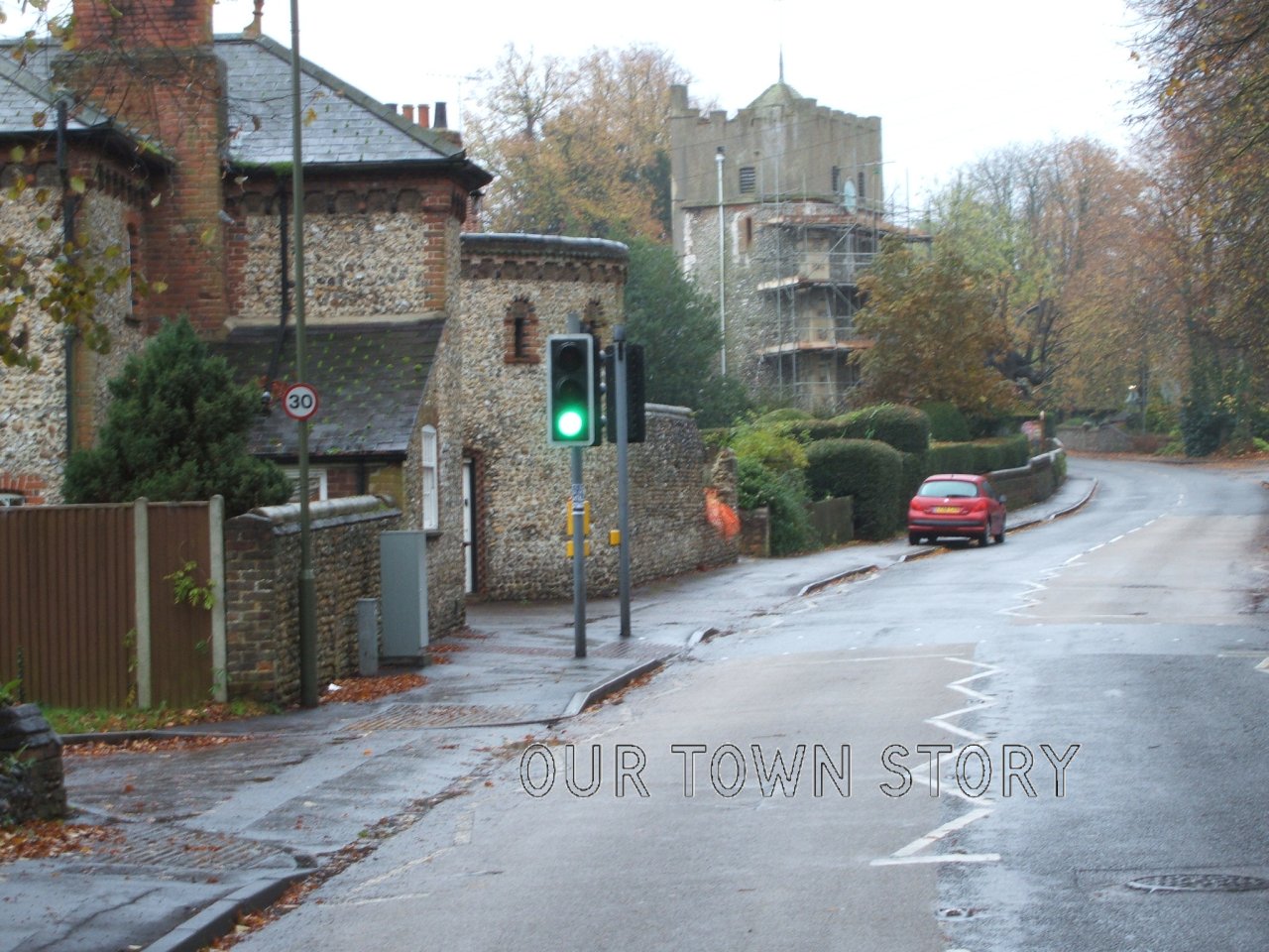 This is the entrance to Horsley Towers Hotel, on the left. Easy to find as it's the only set of traffic signals you meet on Ockham Road after...