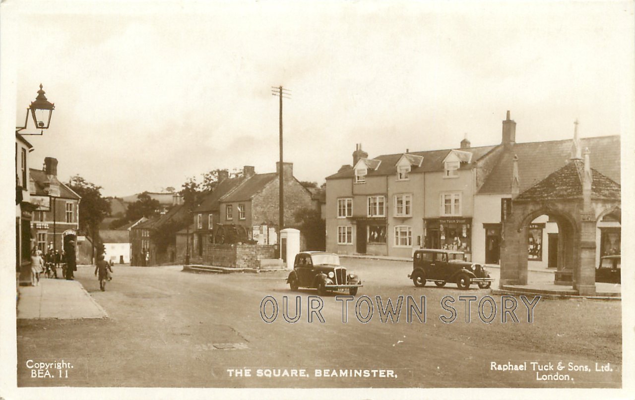 A Raphael Tuck postcard of the Square in Beaminster, first used in around 1939.