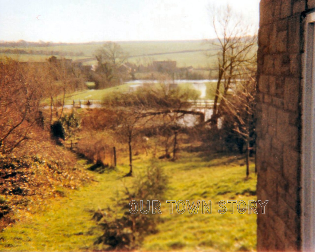 A photograph that I took standing at the bottom of our garden looking at the foot bridge. This is before my father planted the Damson trees between...