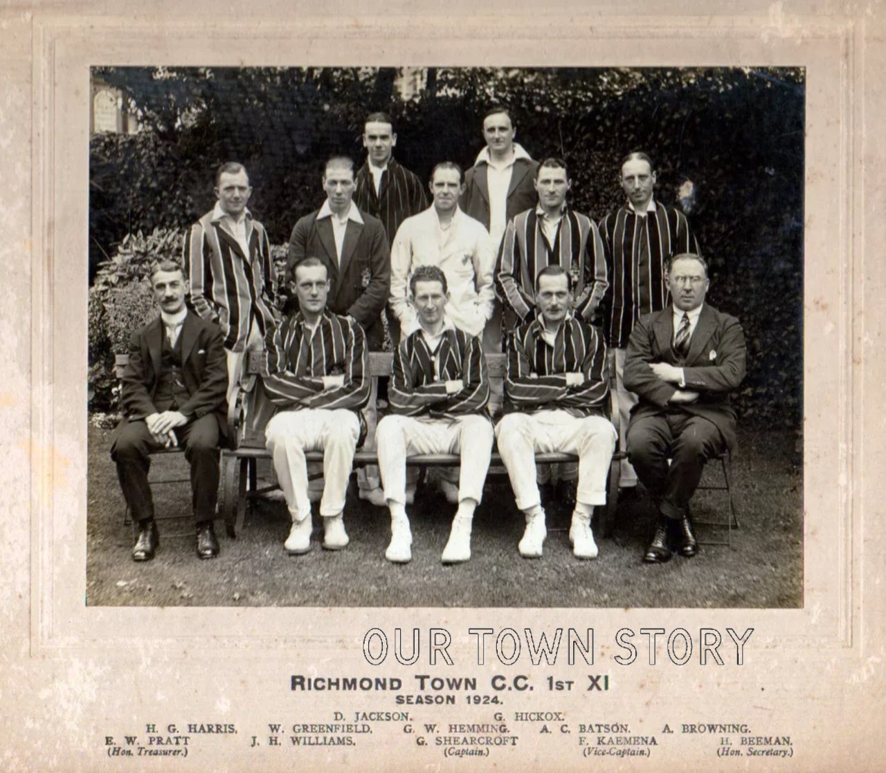 Terribly well presented 1st XI of the Richmond Town Cricket Club, taken in 1924. Players featured are Jackson, Hickox, Harris, Greenfield,...