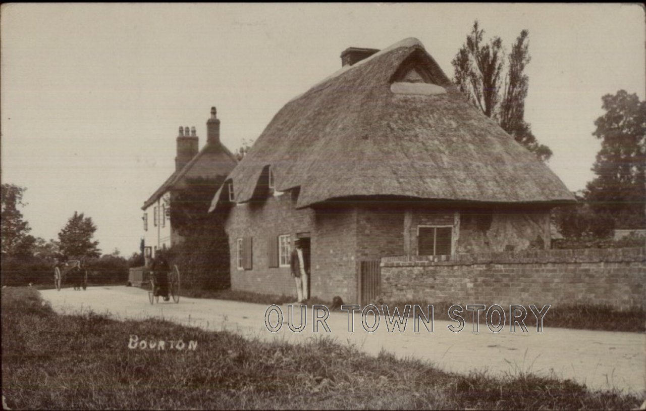 A few looking to towards the thatched cottages in Tolpuddle opposite the Martyrs’ Seat, built to commemorate the Tolpuddle Martyrs. The seat and...