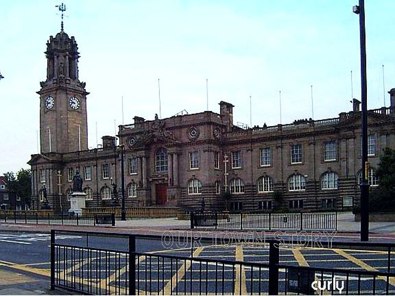 King Street South Shields, with Metro Train on bridge above.