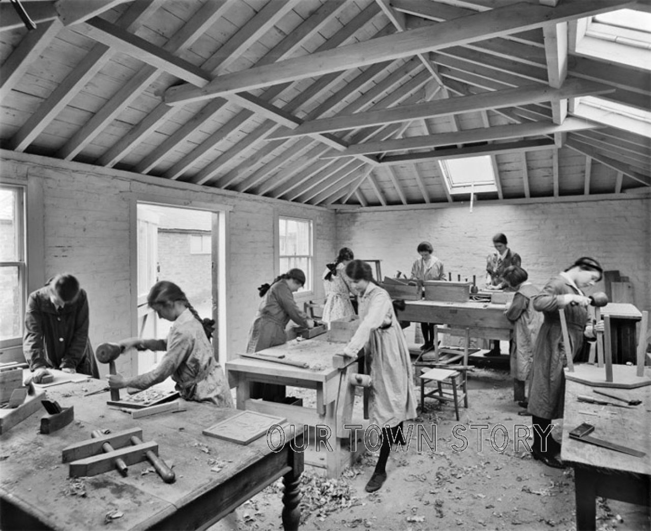 Pupils in a carpentry class at the West Heath School for Young Ladies. The house became a 'school for young ladies' in 1879 under the guidance of...