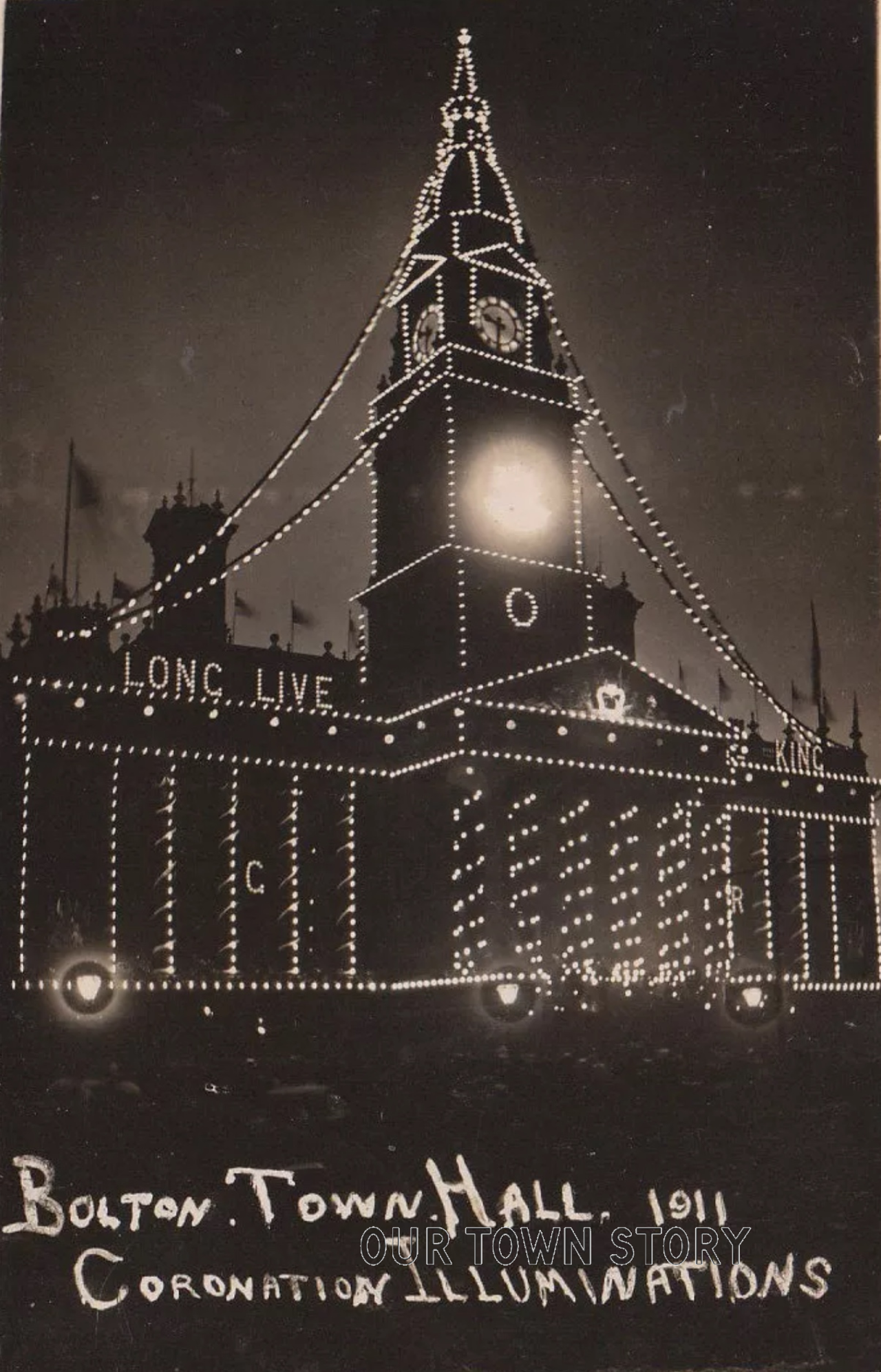 Coronation Illuminations, Bolton Town Hall, Lancashire 1911