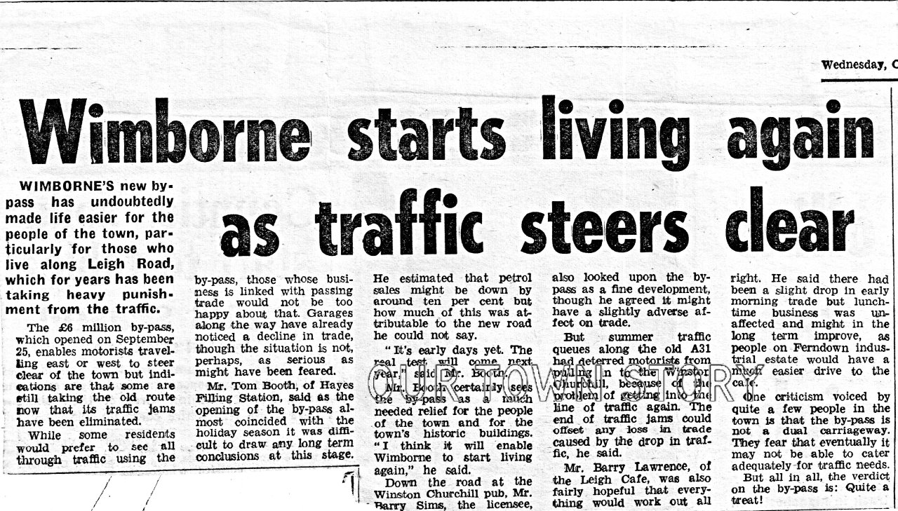 Newspaper Article on traffic after the Wimborne Bypass