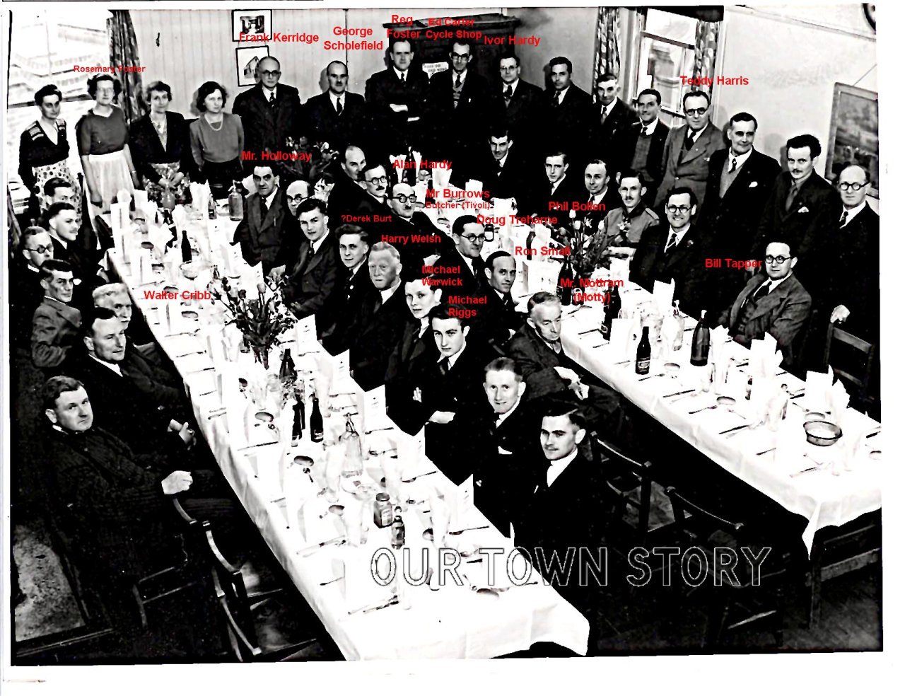 A dinner at the Toc H rooms in Wimborne. I have named as many people as I can, any more suggestions would be appreciated.