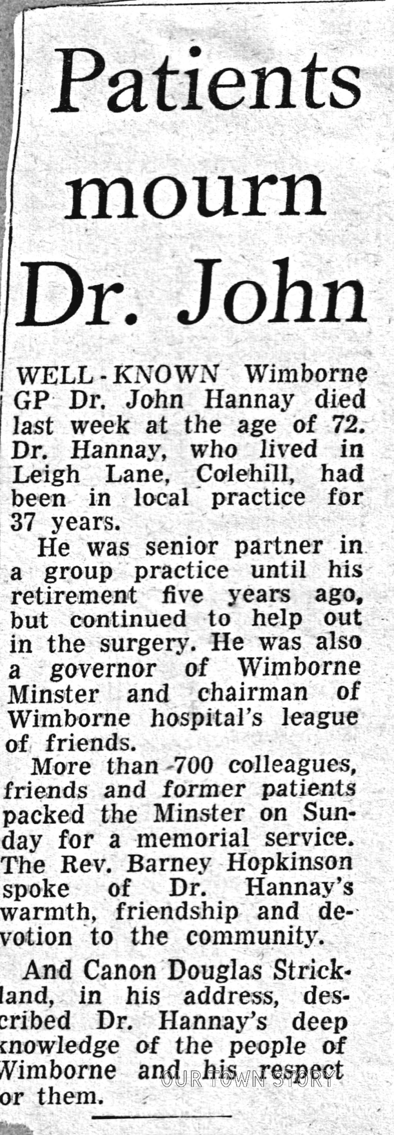Dr. John Hannay Newspaper Cutting