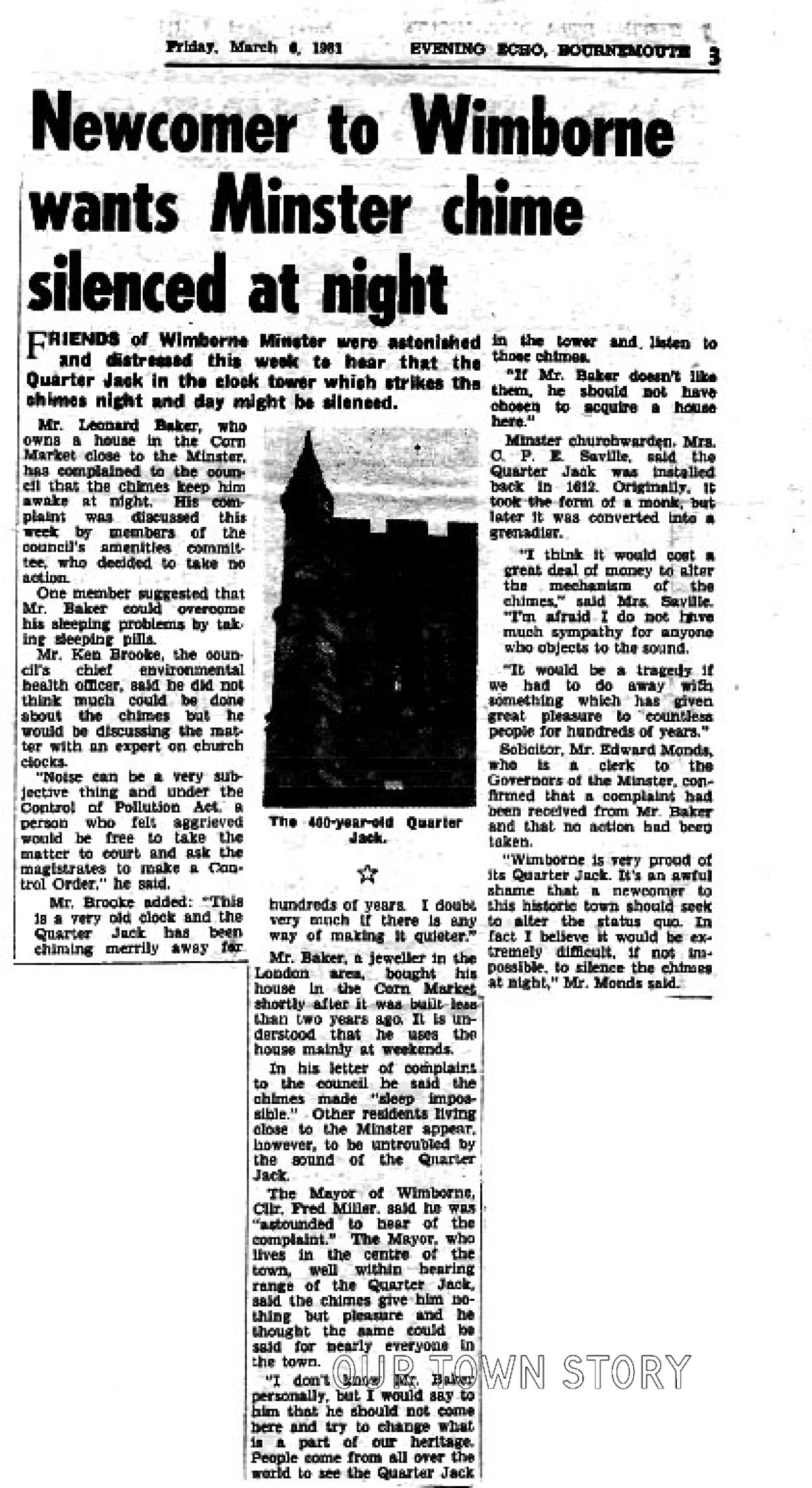Newspaper Article in March 1981 concerning a complaint about the noise of the Quarter Jack