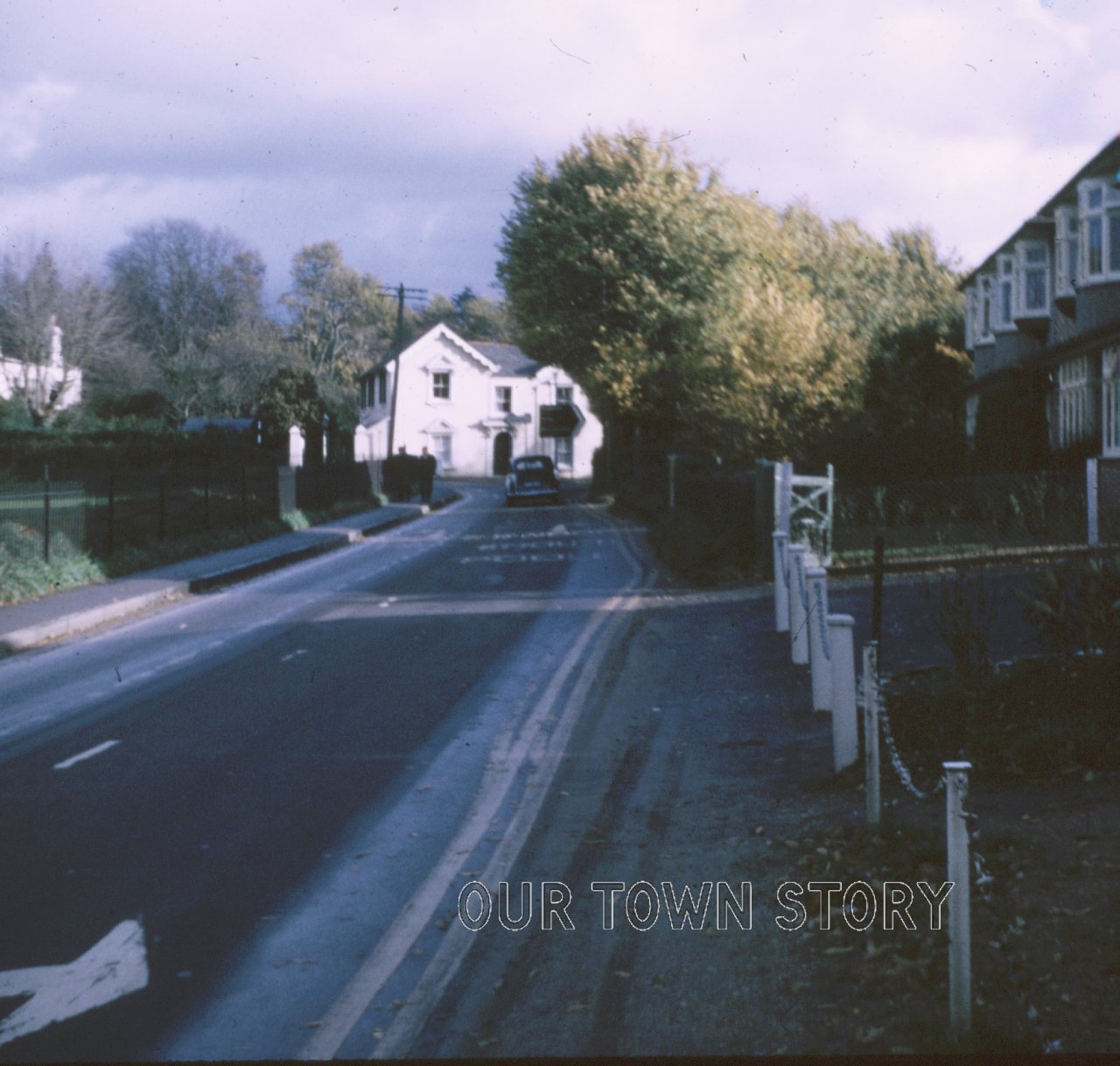 My best guess is that this is where the Cowgrove Road turns off the bottom of St Margaret's Hill, the large building in the picture being the St...