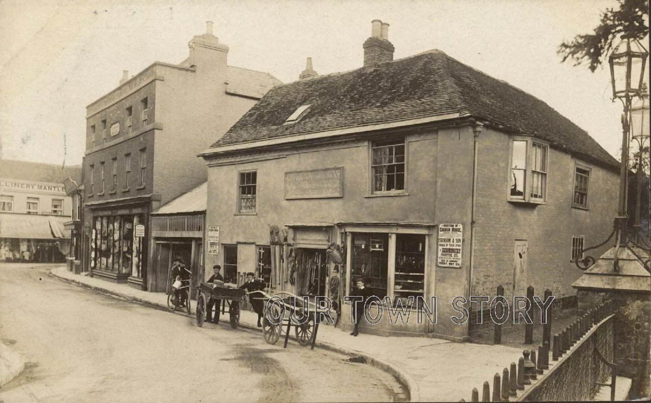 This is the shop next to where Church House currently stands - you can just see the corner of the stables belonging to Sansom's Hardware shop, as...